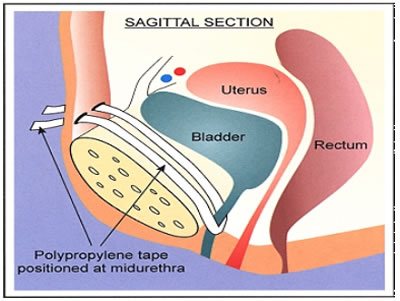 лента удерживает уретру и шейку мочевого пузыря в правильном