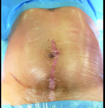 Рис. 1. Послеоперационный рубец после пластики нижней трети левого мочеточника по Боари
