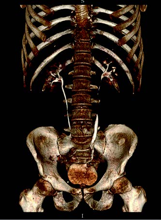 - по данным мультиспиральной компъютерной томографии (МСКТ): чашечно-лоханочная система (ЧЛС) с обеих сторон и мочеточник справа без признаков эктазии. На уровне нижней трети левого мочеточника и мочевого пузыря постоперационные изменения.