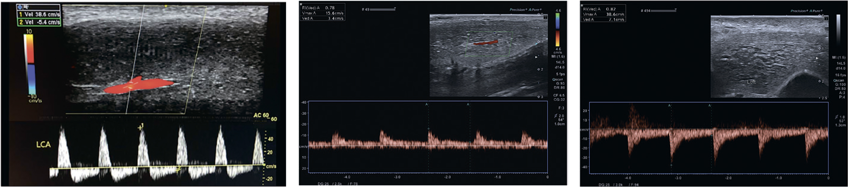 - Оценить пиковую систолическую (PSV) и конечную диастолическую (EDV) скорости кровотока.