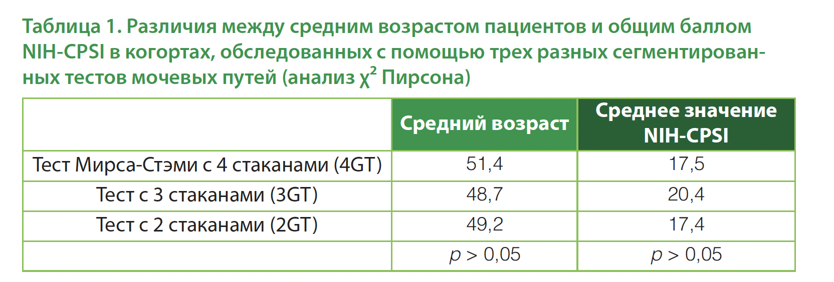 Это было «реальное» исследование, и условия амбулаторного приема не позволяли проводить всем пациентам три теста подряд без лечения. Поэтому мы сравнивали группы по возрасту и NIH-CPSI, чтобы минимизировать искажения.