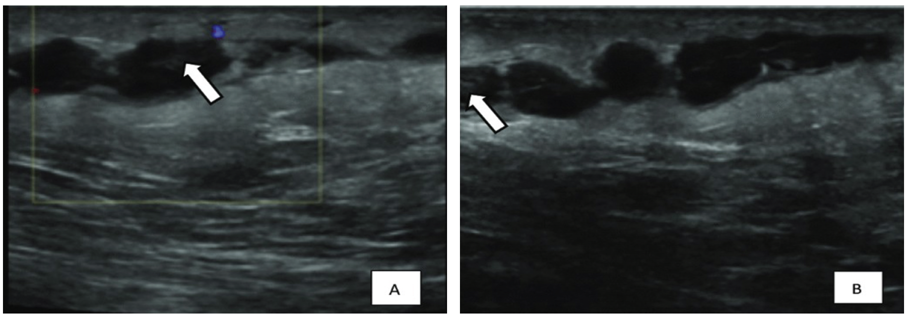 Рис. 2. Ультразвуковое исследование молочной железы при болезни Мондора
