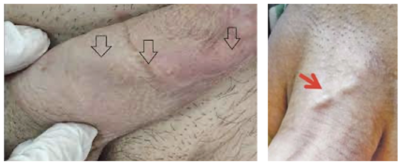 Рис. 3. Симптомы и внешний вид полового члена при болезни Мондора полового члена