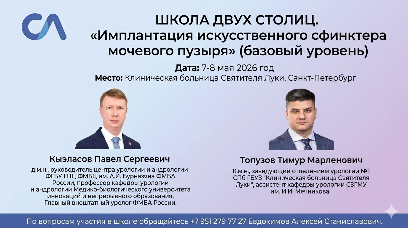 7-8 мая в Санкт-Петербурге! Школа двух столиц. «Имплантация искусственного сфинктера мочевого пузыря»