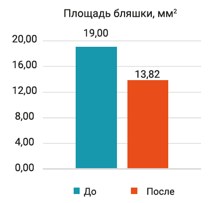 Площадь бляшки снизилась на 27%: с 19,00 до 13,82 мм2 (р<0,05).