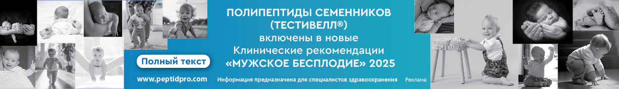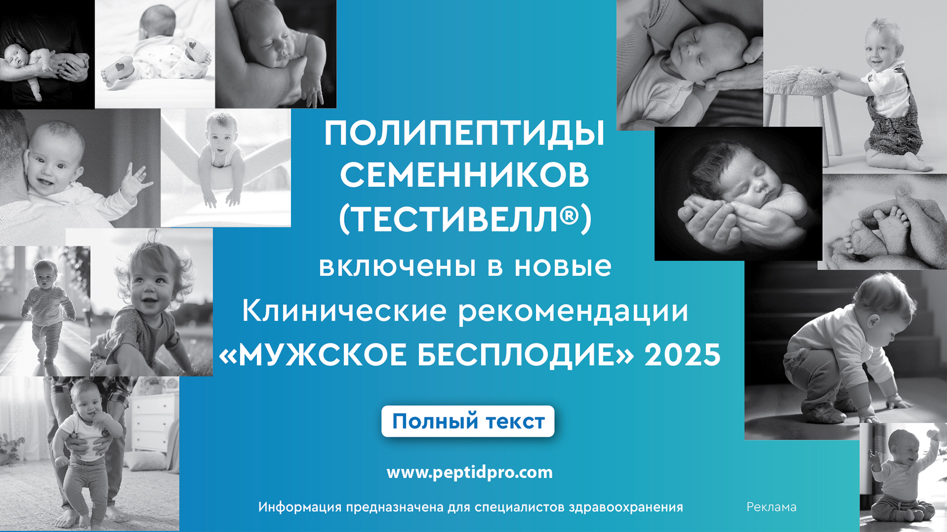 По результатам исследований лекарственный препарат на основе полипептидов семенников (Тестивелл®) включен в клинические рекомендации «Мужское бесплодие» 2025.