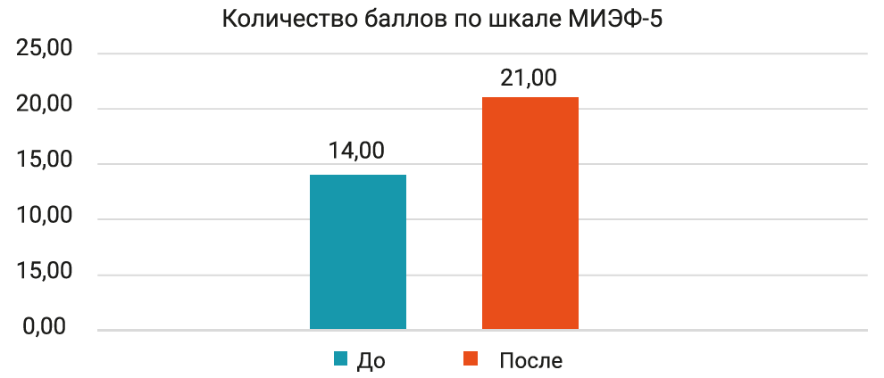 Рисунок 1. . Количество баллов по шкале МИЭФ-5 до и после приема Эделима