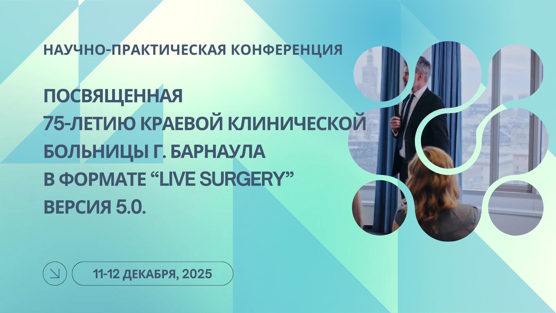 11 и 12 декабря! Научно-практическая конференция, посвященная 75-летию Краевой клинической больницы г. Барнаула в формате “Live surgery”, версия 5.0.