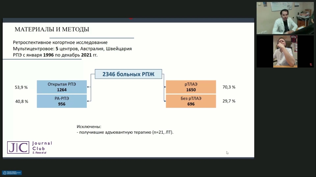 16 марта состоялось заседание "Journal Club" (руководитель С.А. Рева, Санкт-Петербург)! Коллектив клиники урологии Первого Санкт-Петербургского медицинского университета обсуждал статью «Pelvic Lymph Node Dissection in Prostate Cancer: Is It Really Necessary? A Multicentric Longitudinal Study Assessing Oncological Outcomes in Patients With Prostate Cancer Undergoing Pelvic Lymph Node Dissection vs Radical Prostatectomy Only». Докладчик: Арнаутов А.В.