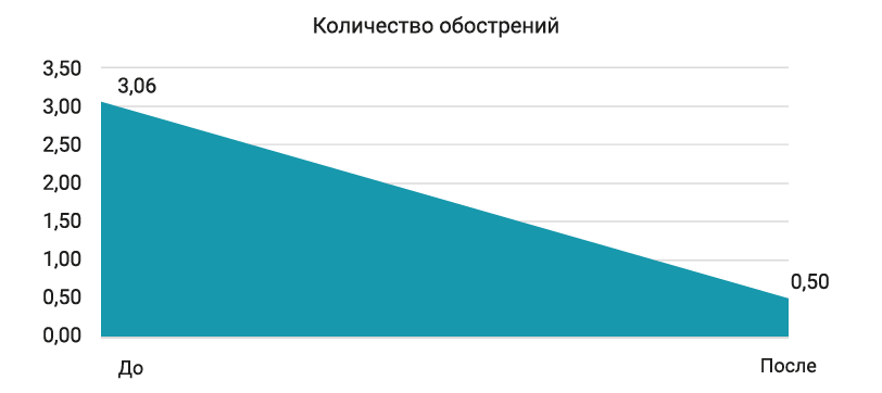 Рисунок 1. Динамика снижения количества обострений рецидивирующего цистита на фоне приема капсул «Цисталис»