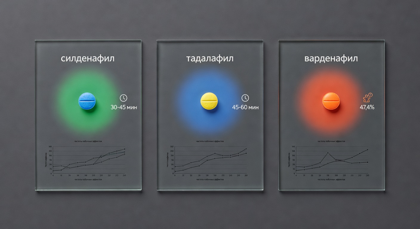 Важным практическим выводом исследования стало подтверждение более быстрого начала действия силденафила (30-45 минут) по сравнению с тадалафилом (45-60 минут).