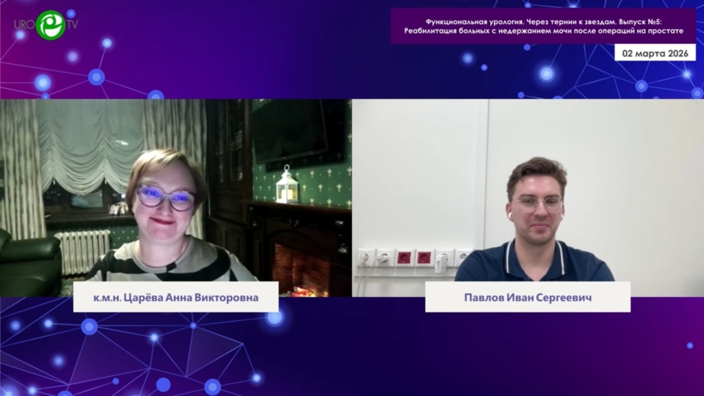 Опубликована запись трансляции очередного выпуска авторского проекта Царёвой А.В. «Функциональная урология. Через тернии к звездам» на тему «Реабилитация больных с недержанием мочи после операций на простате», которая проходила 2 марта 2026 года на сайте Uro.TV.