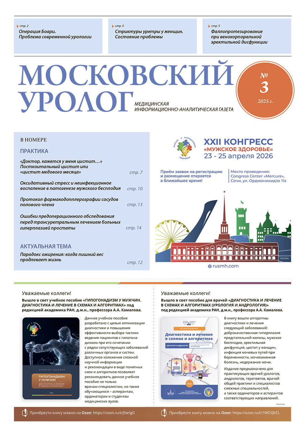 Панферов А.С., к.м.н, руководитель центра урологии медицинского центра «Медассист»; доцент кафедры медицинской биоинженерии Юго-Западного государственного университета, Курск, Россия