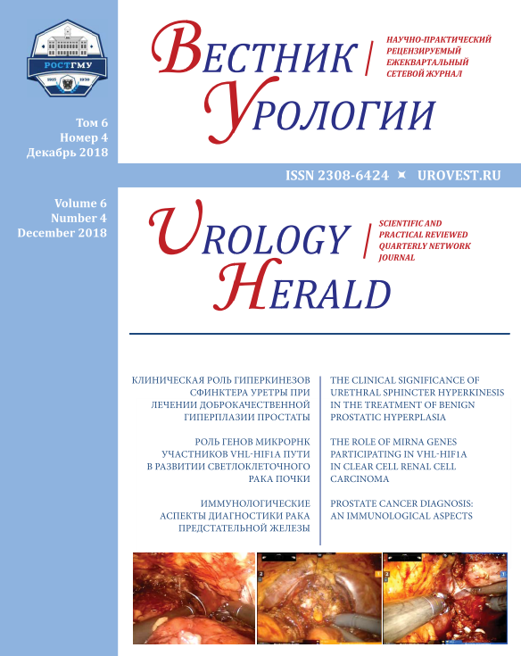 Статья опубликована в журнале "Вестник урологии" № 4 2018, стр. 67-76