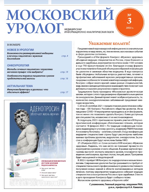 В свою очередь профессор П.И. Раснер привел пример исследования, где применение препарата Бетмига 50 мг (который используется для лечения пациентов с гиперактивным мочевым пузырем) привело к снижению частоты ночных мочеиспусканий на 58% [2]. Павел Ильич обратил внимание коллег на препарат Вазопрессин, который часто назначается у пациентов с ночной полиурией. Профессор С.Т. Мацкеплишвили подтвердил эффективность данного препарата, однако предупредил о том, что пациенты могут злоупотреблять его использованием, особенно в форме спрея. Врачу следует своевременно предупреждать пациентов не только о приверженности терапии, но и о строгом соблюдении назначений врача.