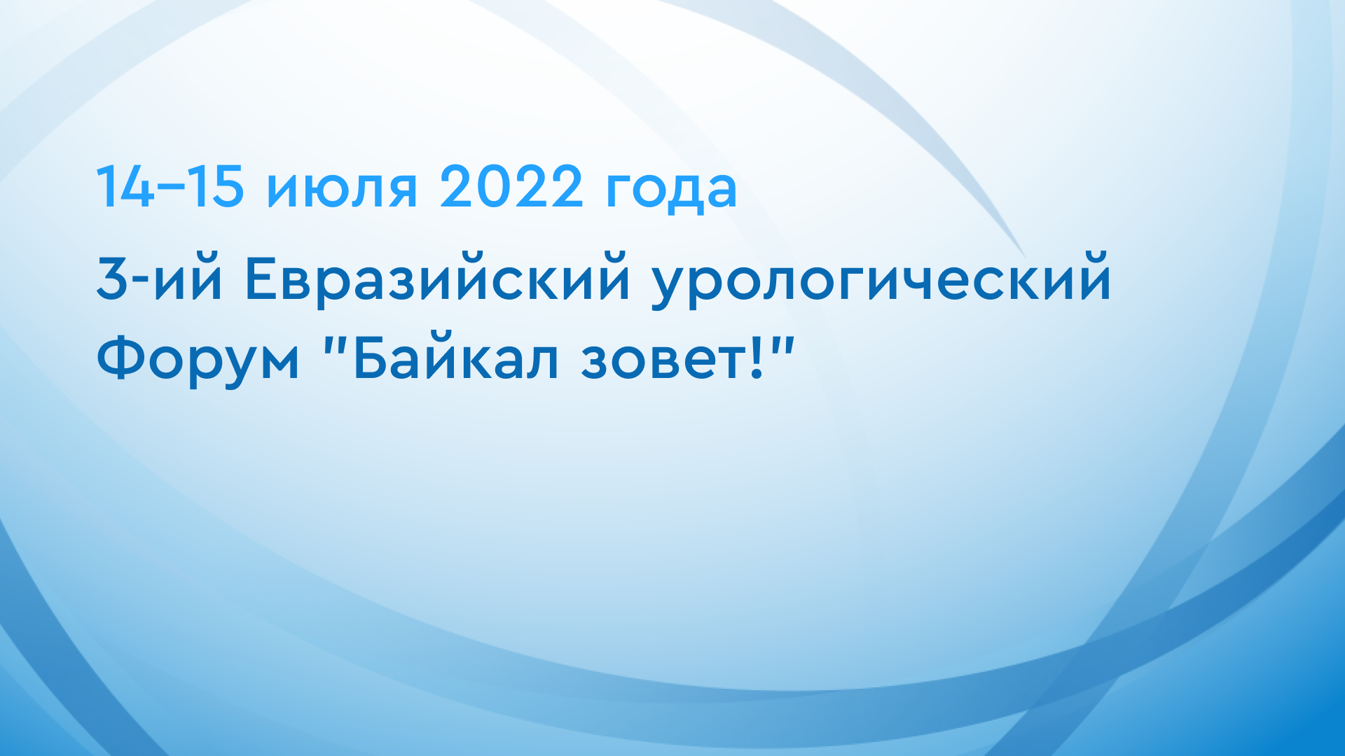 Предлагаем Вам принять участие в 3-ЕМ ЕВРАЗИЙСКОМ УРОЛОГИЧЕСКОМ ФОРУМЕ: «БАЙКАЛ ЗОВЕТ!», который состоится 14-15 июля 2022г. в операционных и конференц-зале Иркутской ордена «Знак Почета» областной клинической больницы.