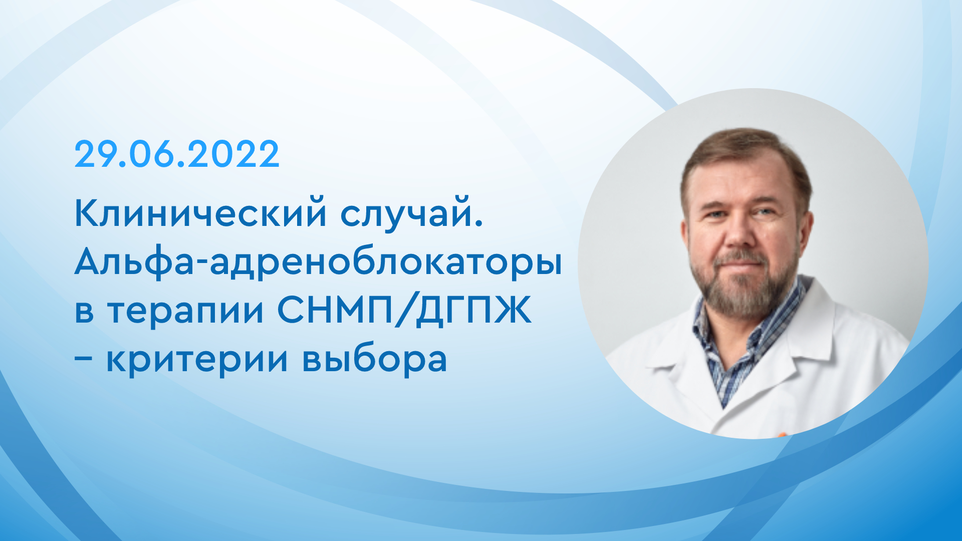 Приглашаем присоединиться к трансляции Клинический случай на тему «Альфа-адреноблокаторы в терапии СНМП/ДГПЖ – критерии выбора», которая состоится 29 июня в 15.00 по московскому времени.