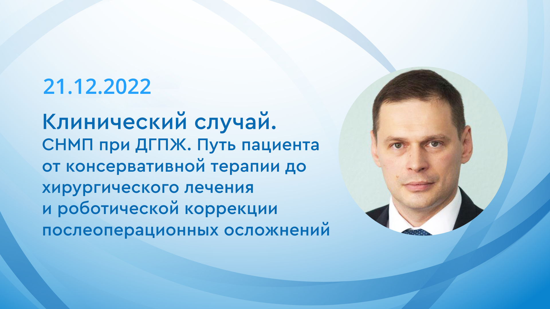 Приглашаем присоединиться к трансляции Клинический случай на тему «СНМП при ДГПЖ. Путь пациента от консервативной терапии до хирургического лечения и роботической коррекции послеоперационных осложнений», которая состоится 21 декабря в 14.00 по московскому времени.