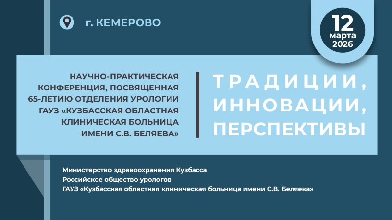 Приглашаем Вас принять участие в Научно-практической Конференции «Традиции, инновации, перспективы», приуроченной к 65-летию отделения урологии ГАУЗ «Кузбасская областная клиническая больница имени С.В. Беляева».