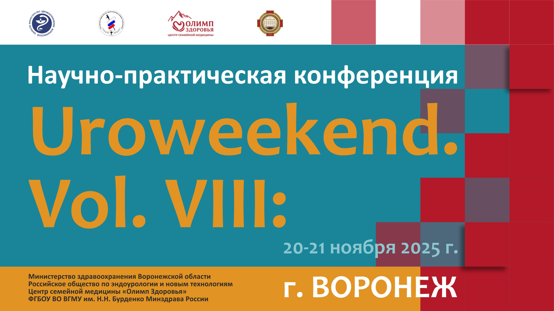 Приглашаем Вас принять участие в научно-практической конференции «Uroweekend. Vol.VIII: Интеллект и интеграция в урологии» под патронажем Российского общества по эндоурологии и новым технологиям.