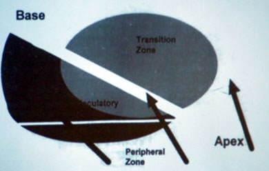 Схема секстантной биопсии простаты по K.K. Hodge et al., 1989