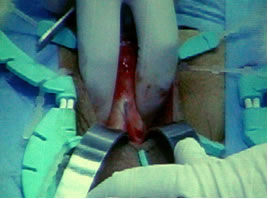 Ножницами рассечена поперечная фасция. Окно расширено пальцем