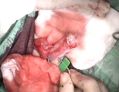 размерами 8мм х 17 мм, по методике Hodgson перемещён на