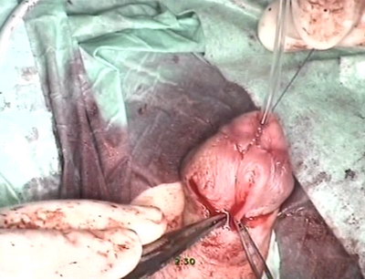 дистального отдела уретры непрерывным прецезионным швом