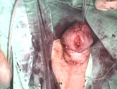 неоуретрой по методике flip-flap. Края крайней плоти сопоставлены