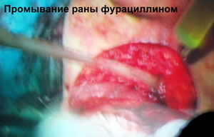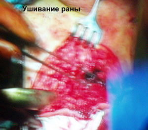 раны через контрапертуру трубчатым дренажем. Рана послойно