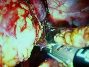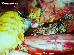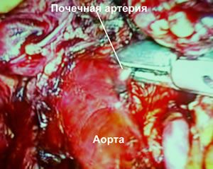 Продолжено выделение блока почки с паранефральной клетчаткой.