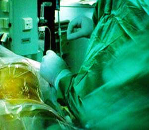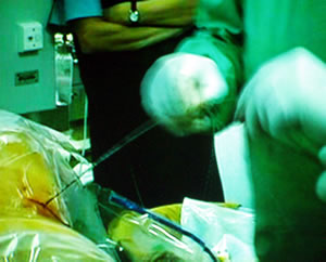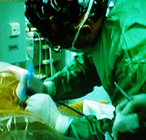Далее профессор надсек скальпелем кожу, что бы проводить