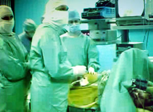 Лапароскопическая уретеролитотомия началась с укладки больной.