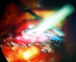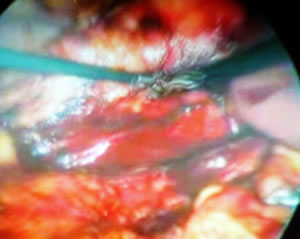 Париетальная брюшина вскрыта настолько, что бы легко отодвинуть