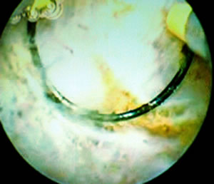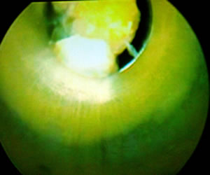Затем он отмыл осколки конкремента через тубус резектоскопа,