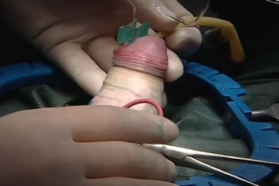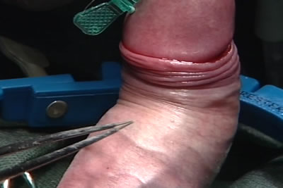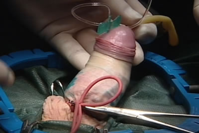 Основание полового члена пережато резиновой трубкой для
