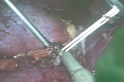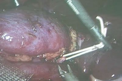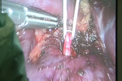 Видна сосудистая ножка почки. На артерию наложена резиновая