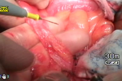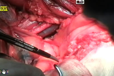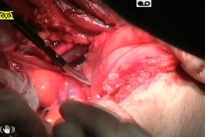 Продолжается выделение задный стенки мочевого пузыря, простаты.
