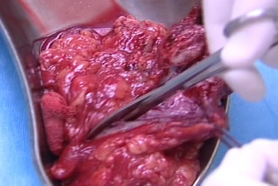 Ассистент пинцетом показывает правый семенной пузырек.
