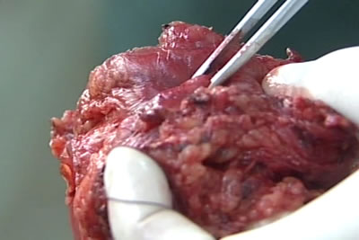 Препарат вскрывается. Одна из бранш ножних заведена в уретру.