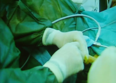 Резектоскоп введен в мочевой пузырь и готов для проведения
