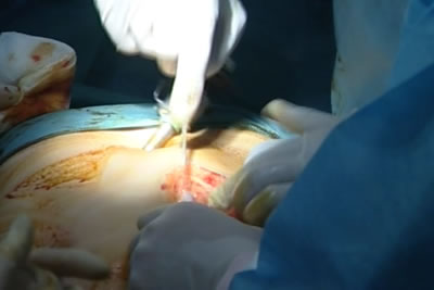 Окончательный этап операции - дренирование, ушивание ран.