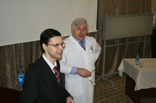В докладе была дана классификация осложнений эндовидеоскопических операций, которые делятся на потенциально летальные (анестезиологические осложнения, газовая эмболия, ранение магистральных сосудов, нераспознанный перитонит, неадекватное лечение рака, ставшее основной причиной смерти пациента), «большие» нелетальные осложнения (эмфизема средостения, сердечные аритмии, повреждение ЖКТ, травмы сосудов, пневмоторакс), «малые» осложнения (перфорация иглой Вереша, эмфизема сальника, незначительное кровотечение, боли в области плеча, грыжи и т. д.). Для каждого осложнения были даны предпосылки возникновения, клиника и лечение.