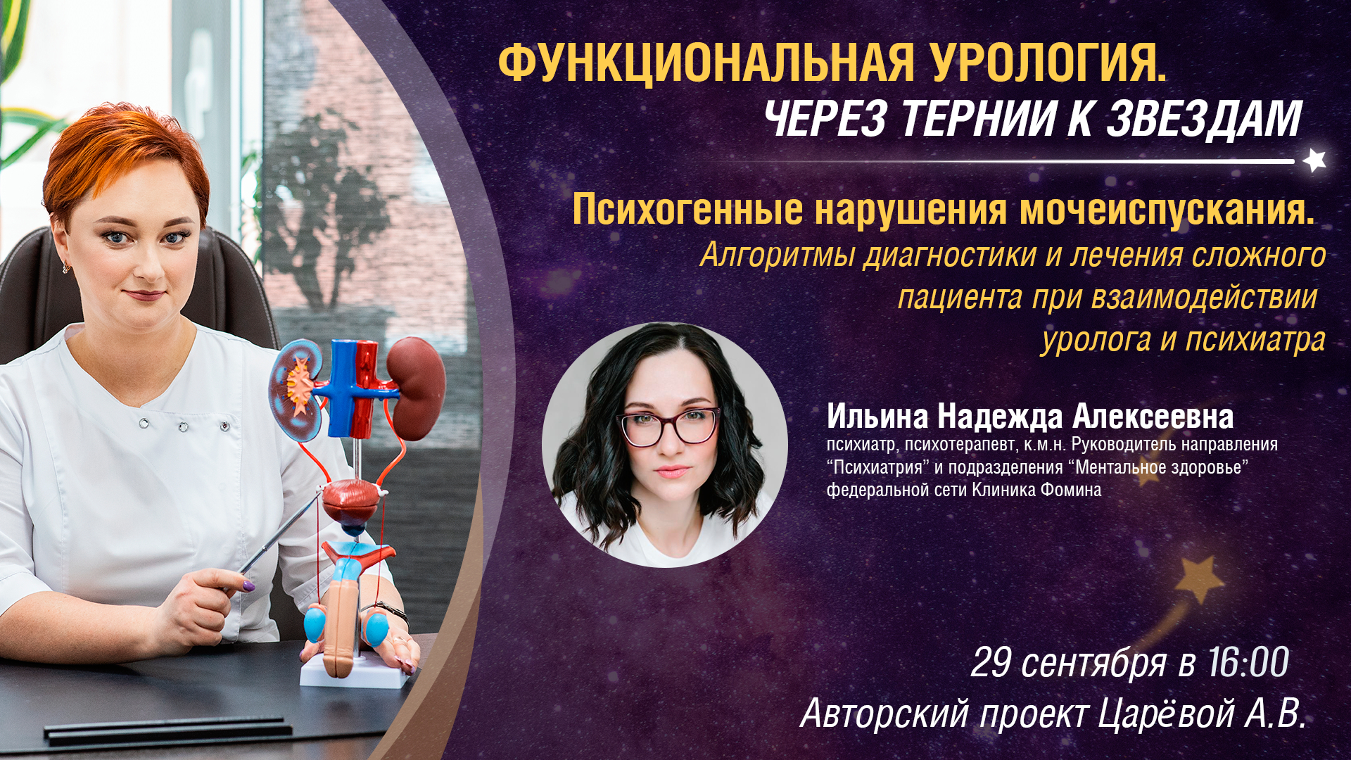 29 сентября в 16:00! Авторский проект Царёвой А.В. «Функциональная урология. Через тернии к звездам»