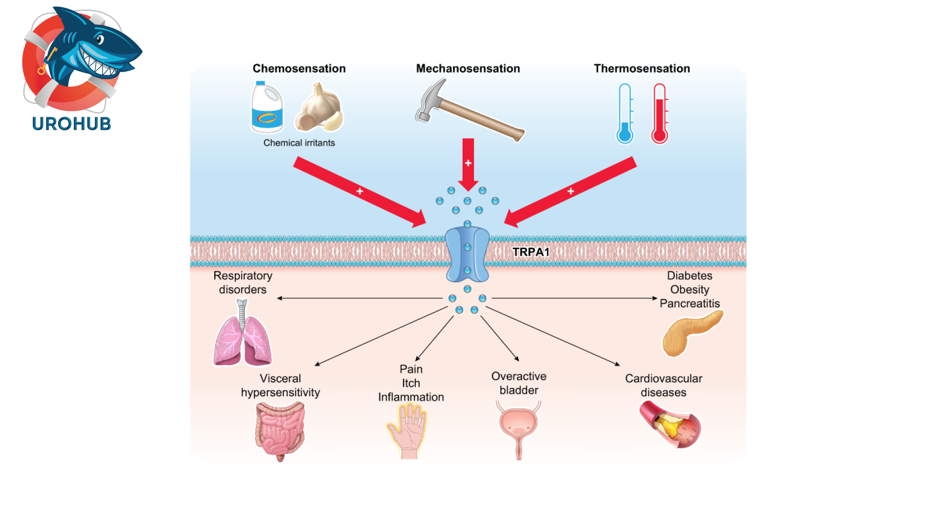 Канал TRPA1 - катионный канал, который локализуется на плазматической мембране в чувствительных нейронах мочевого пузыря и других клеток человека и животных. Он отвечает на термические и механические стимулы, а также является основным хемосенсором.