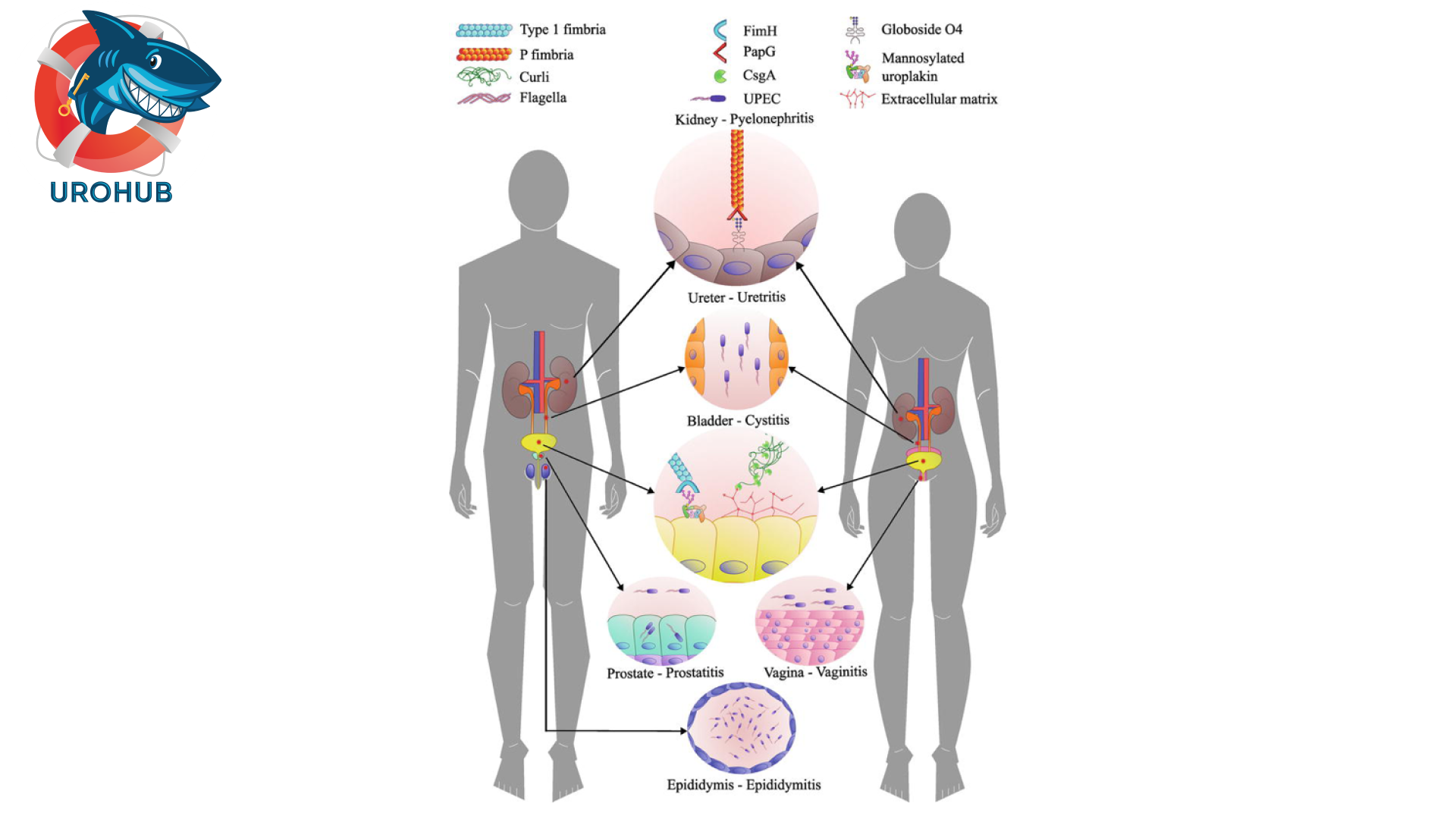 Уробиом здоровых женщин содержит несколько видов Lactobacillus, некоторые из которых могут препятствовать росту Escherichia coli в мочевыводящих путях. Хотя Lactobacilli были обнаружены в микробиоте мужской уретры, их присутствие в микробиоте мужского мочевого пузыря менее достоверно. Ученые утверждают, что микробиом дистальной части мужской уретры и вагинальный микробиом женщины влияют друг на друга, но необходимы дополнительные исследования прямого взаимодействия их уробиомов.