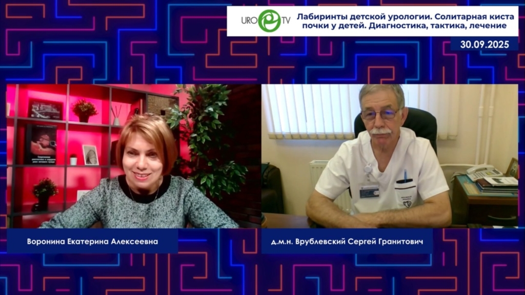 Опубликована видеозапись трансляции очередного выпуска проекта «Лабиринты детской урологии» на тему «Солитарная киста почки у детей Диагностика, тактика, лечение», которая проходила 30 сентября 2025 года на сайте Uro.TV.